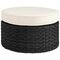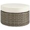 Kerrosjalka Toledo synteettisestä rottingista.Pyöreä jakkara, jonka tyyny on vaaleaa kangasta.