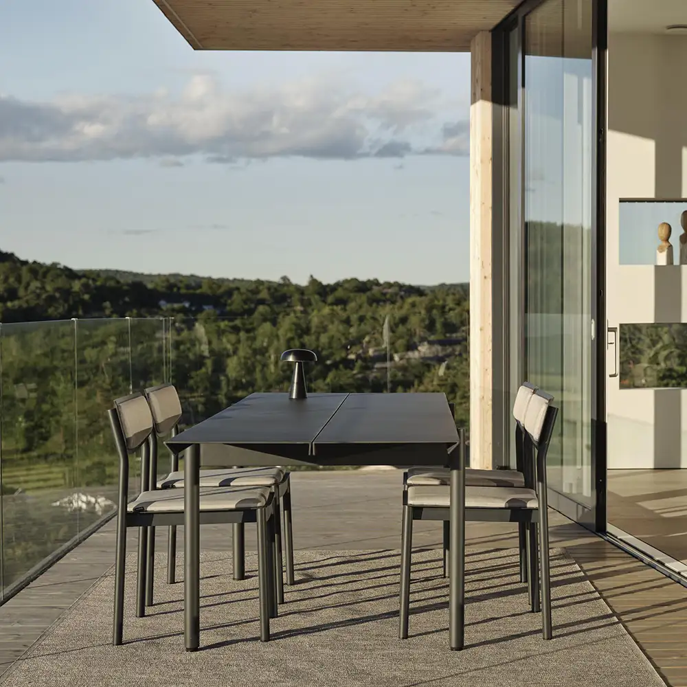 B45-ulkopöydät lakattua alumiinia. Yhdistä näitä kauniita pöytiä mukaviin ruokapöydän tuoleihin tai nojatuoleihin luodaksesi kutsuvan ruokailuryhmän terassille, lasiterassille tai pihalle.